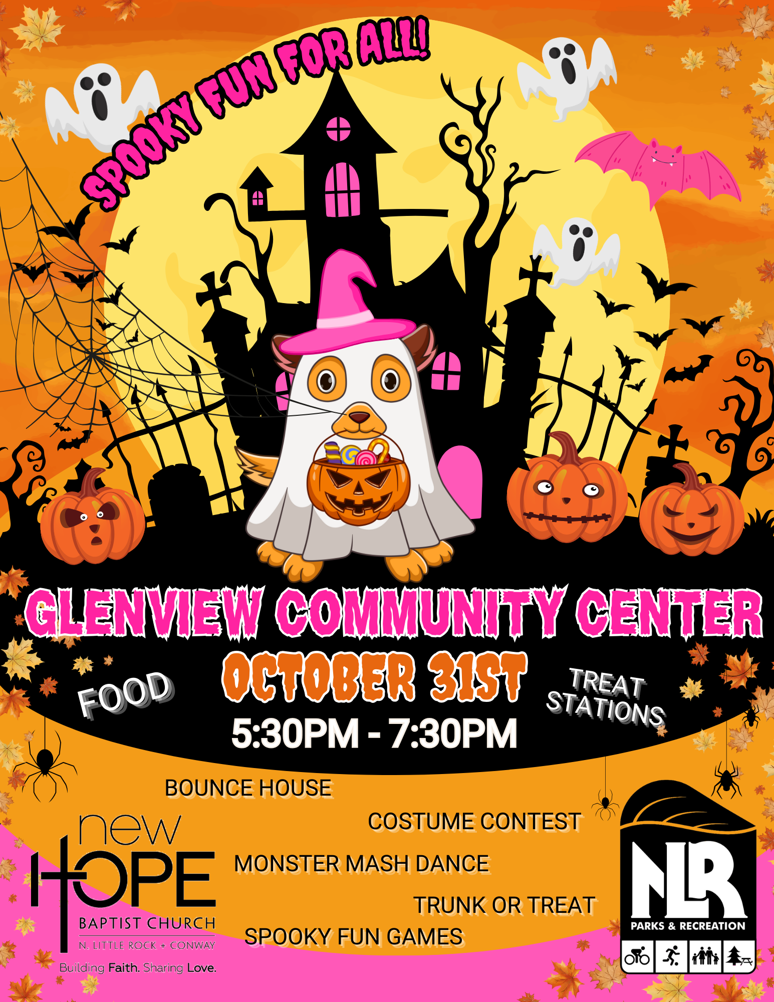 Oct 31 5:30 pm – 7:30 pm Spooky Fun for All at Glenview CC Glenview Community Center 4800 E 19th Street, North Little Rock Event Details Get Directions